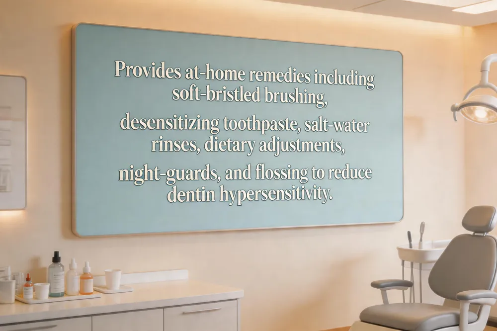 - Brush twice daily with a fluoride or nitrate‑based desensitizing toothpaste; consider an OTC gel for extra protection.
