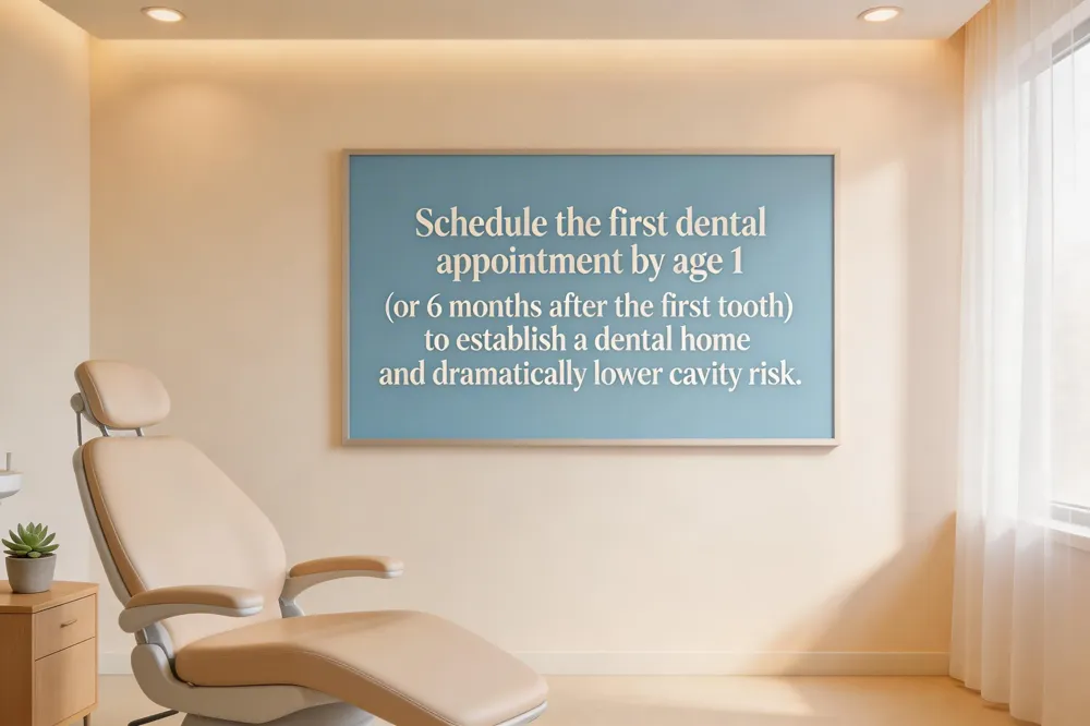 Professional guidelines for the first visit are clear: the American Academy of Pediatric Dentistry (AAPD), the American Dental Association (ADA) and the American Academy of Pediatrics (AAP) all recommend that a child’s first dental appointment occur by age one year, or within six months of the first tooth erupting. This early timing lets the dentist establish a "dental home," screen for early decay, and give parents personalized guidance on brushing, fluoride, diet and oral‑habit prevention.
