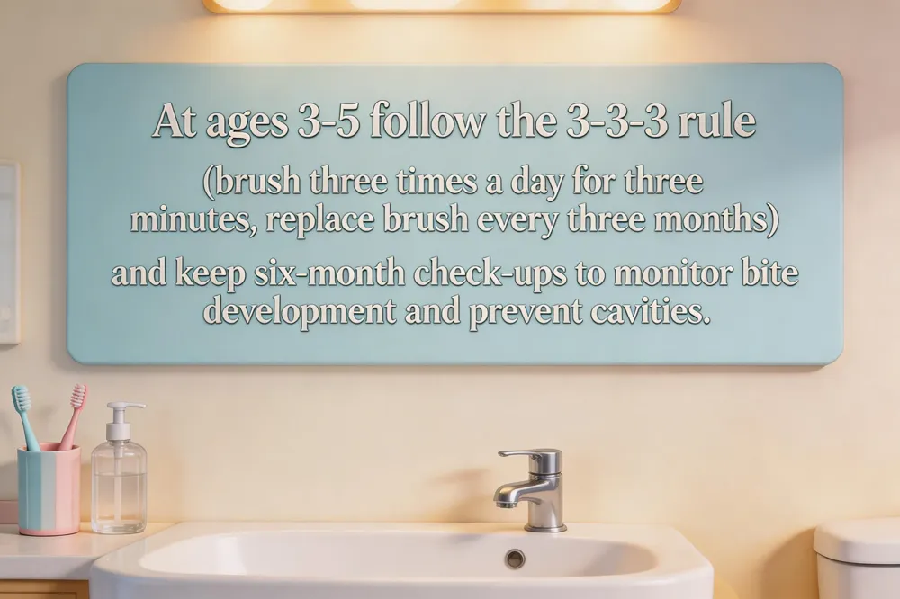 The 3‑3‑3 rule for teeth – Brush three times daily (morning, after lunch, before bedtime) for three minutes each session, using a soft‑bristled brush at a 45° angle. Replace the brush every three months. This simple routine, combined with regular six‑month check‑ups, keeps plaque under control and supports lifelong oral health. Veenstra Family Dental welcomes children of all ages, offering a calm, family‑focused environment and modern preventive techniques to ensure every visit is a positive step toward a lifetime of healthy smiles.