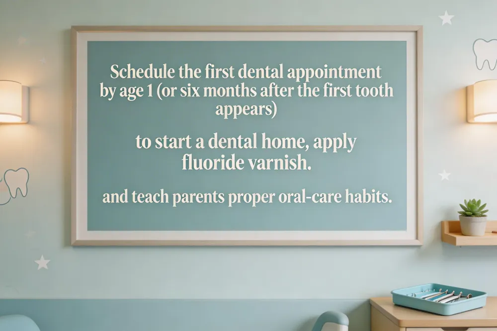 The American Academy of Pediatric Dentistry and the ADA recommend that a child’s first dental appointment occur by age 1, or within six months after the first tooth erupts. This early visit lets the dentist check for early signs of decay, give guidance on proper cleaning, fluoride use, and infant feeding habits, and establish a “dental home” for ongoing preventive care. During the brief 30‑45‑minute exam the dentist will look at the teeth, gums, and bite, may apply a gentle fluoride varnish, and demonstrate brushing techniques for parents. Scheduling the appointment when the child is well‑rested and not hungry helps keep the experience positive and builds confidence for future visits.